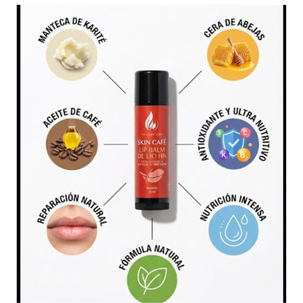 Su fórmula 100 % natural, elaborada con café de especialidad colombiano, manteca de karité y cera de abejas, nutre profundamente, repara y protege los labios, ayudando a mantenerlos suaves, flexibles y saludables incluso en condiciones de resequedad, frío o viento.